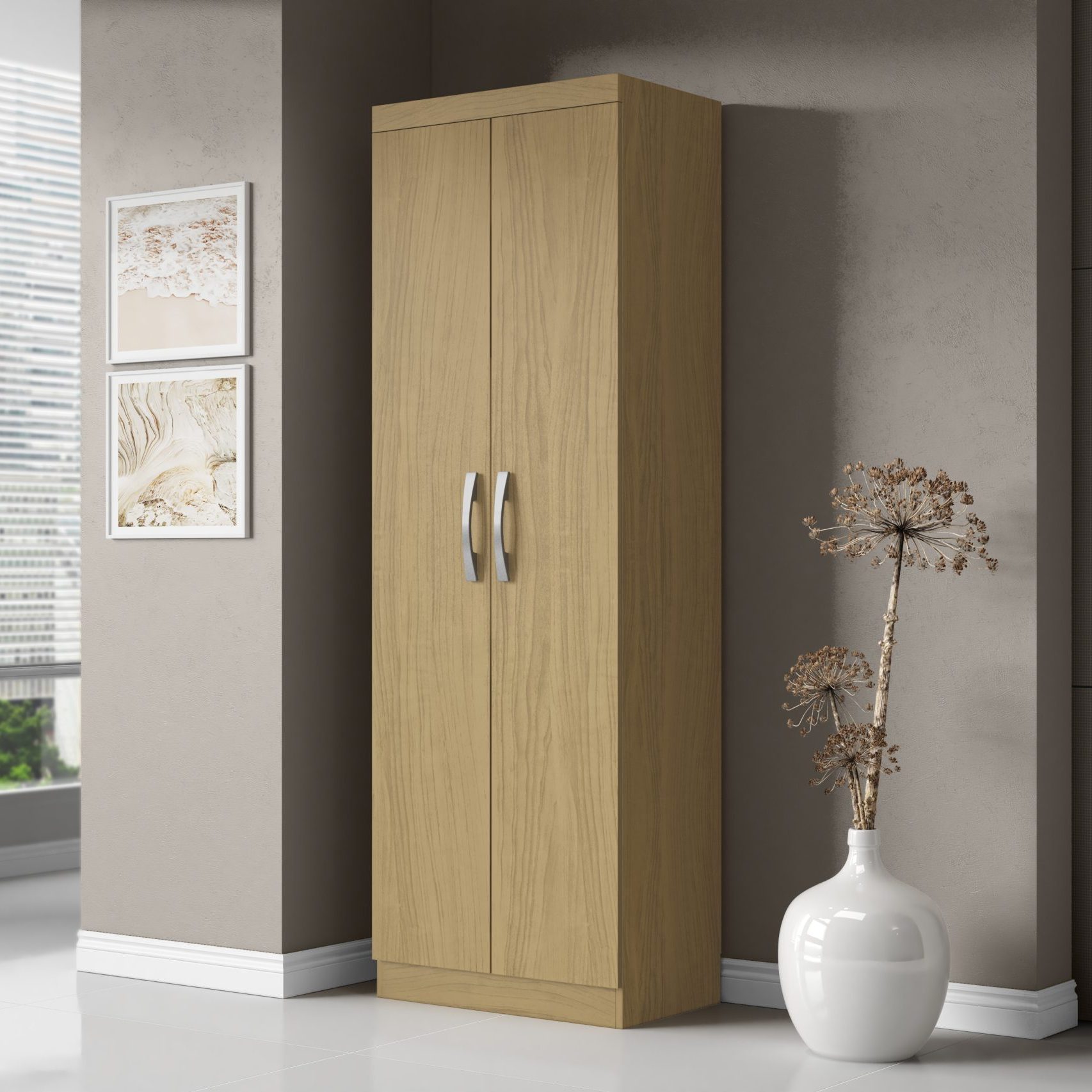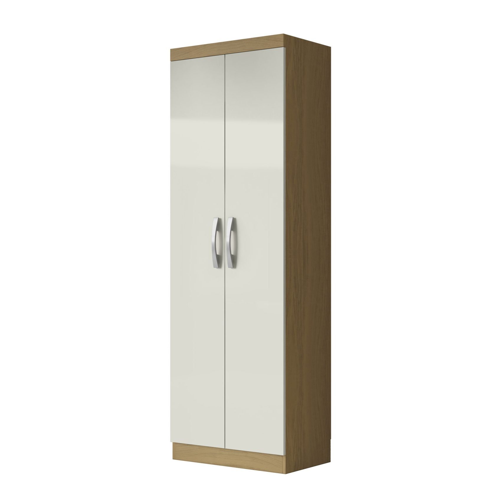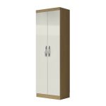 Armário Multiuso 02 portas. Produzido em aglomerado 12mm de espessura, proporcionando resistência e durabilidade. Amplo espaço interno, garantindo maior firmeza ao móvel. Puxadores de Plástico dando maior resistência. 03 Prateleiras amplas, proporcionando maior conforto e comodidade em guardar seu sapatos sem amassar. Dobradiças metálicas dando maior durabilidade e resistência ao abrir e fechar as portas. Acabamento em verniz texturizado fosco e verniz brilho nas portas, garantindo a conservação do móvel, além de manter a beleza constante oferece ao móvel, resistência e durabilidade prolongando a vida útil do produto.