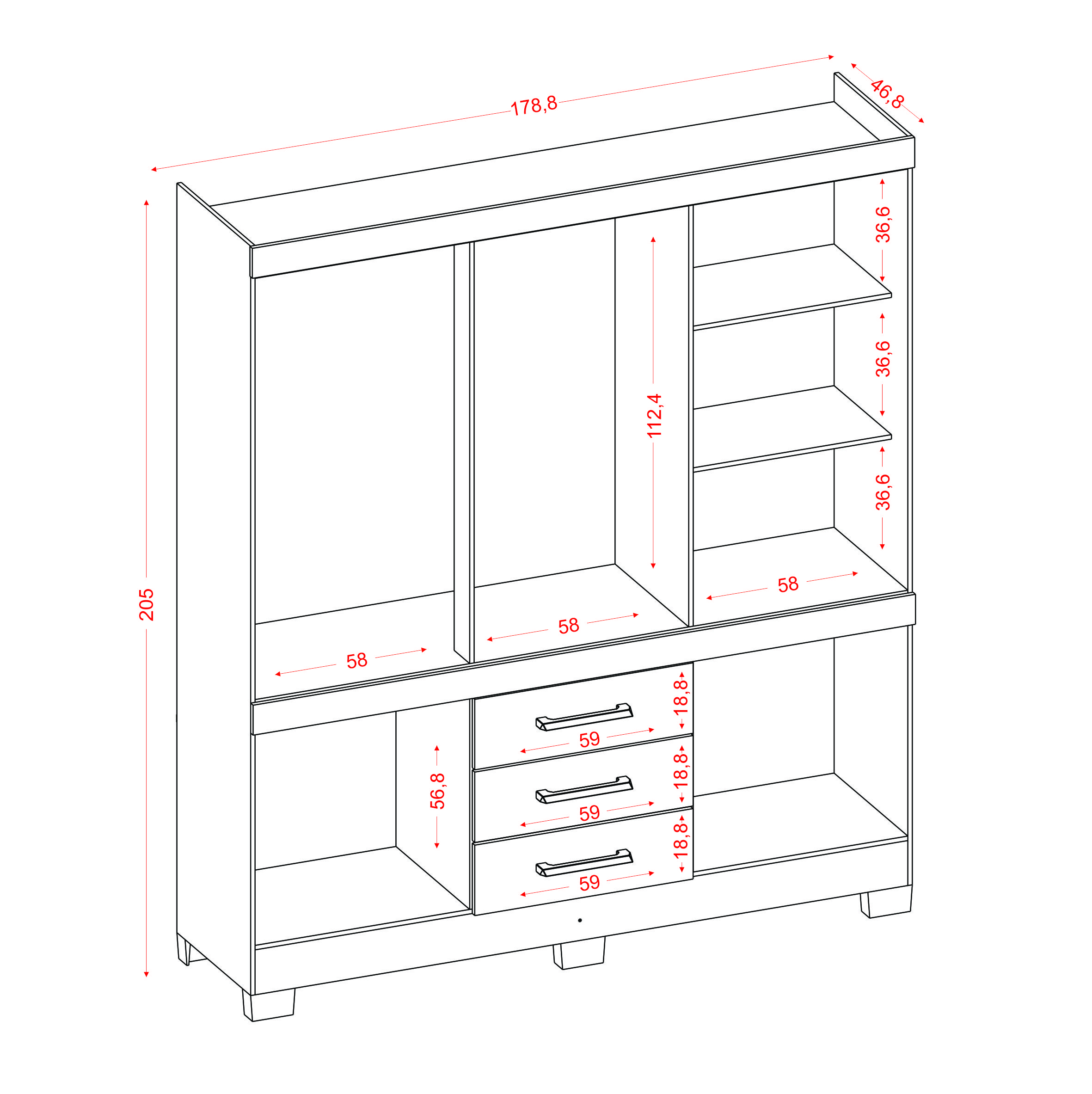 GR de 10 portas e 3 gavetas. Produzido inteiro em aglomerado 12mm na caixa e 15mm nas portas, proporcionando resistência e durabilidade. Amplo espaço interno, garantindo maior firmeza ao móvel. Puxadores de Plástico dando maior resistência. Gavetas amplas com melhor fixação, proporcionando maior conforto e comodidade em guardar roupas sem amassar e puxar fios. Cabideiro em madeira revestido em PVC Cinza, garantindo a sustentação das roupas sem quebrar com facilidade e sem envergar com o tempo de uso. Dobradiças metálicas dando maior durabilidade e resistência ao abrir e fechar as portas, corrediças das gavetas em metal, oferecendo durabilidade e um melhor deslize ao abrir e fechar as gavetas. Acabamento em verniz texturizado fosco, garantindo a conservação do móvel, além de manter o brilho constante oferece ao móvel beleza, resistência e durabilidade prolongando a vida útil do produto.